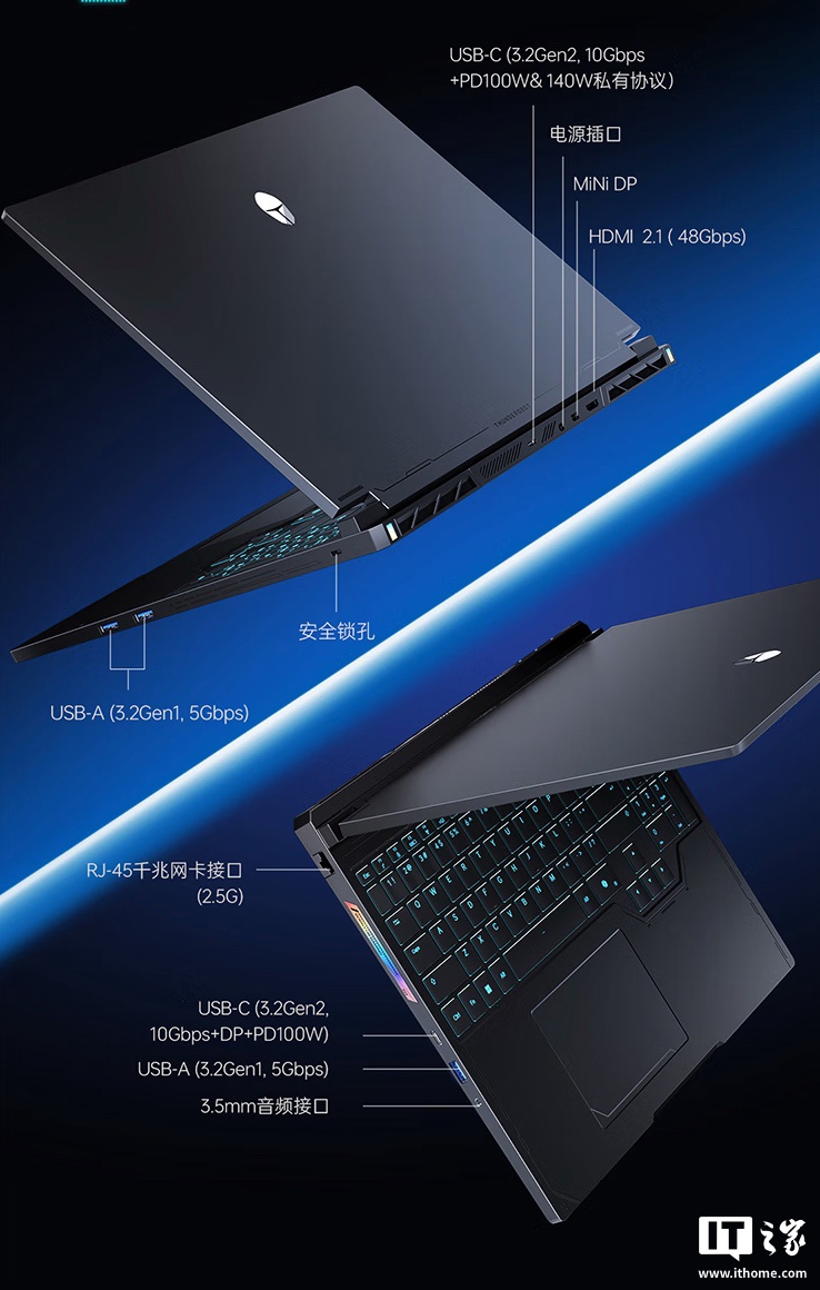 该机整体厚度 2.3 厘米,内置 80Wh 电池。